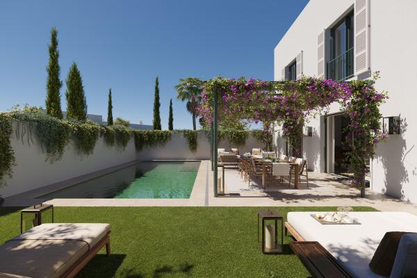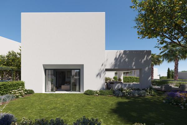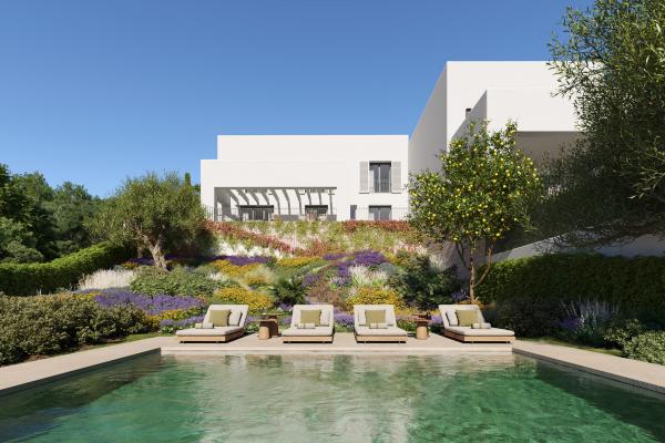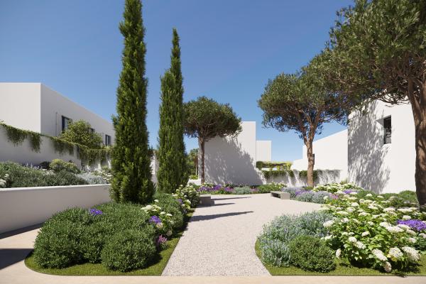 La promoción consta de 49 viviendas, cada una con piscina privada y jardín, distribuidas en tres tipologías distintas: